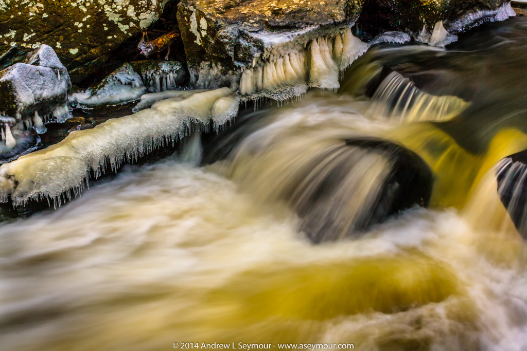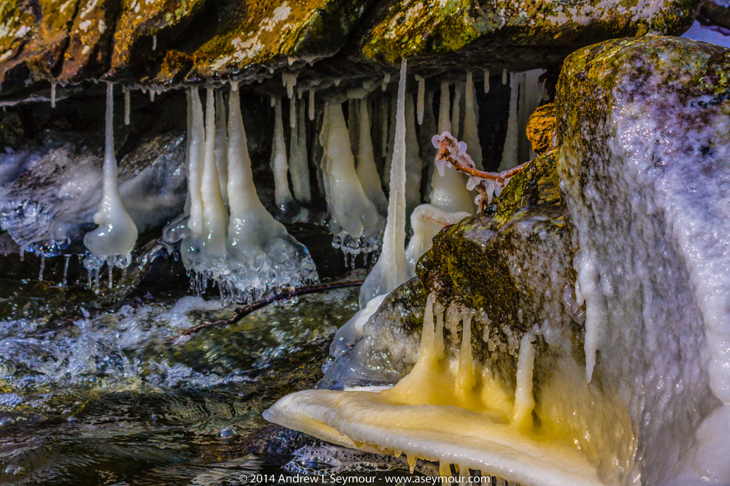 Some of the ice structures that I had seen on my visit on the 8th, were no longer around, and the water was not as dark with silt.